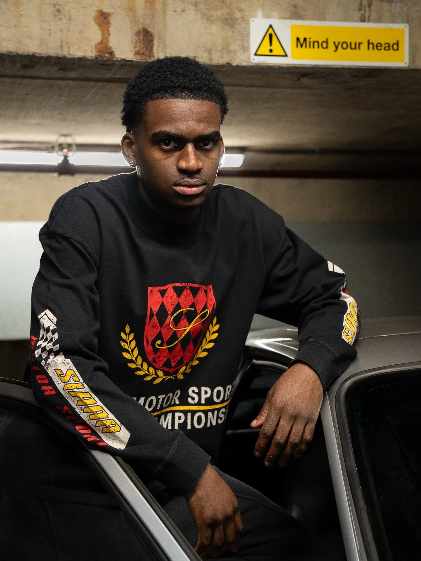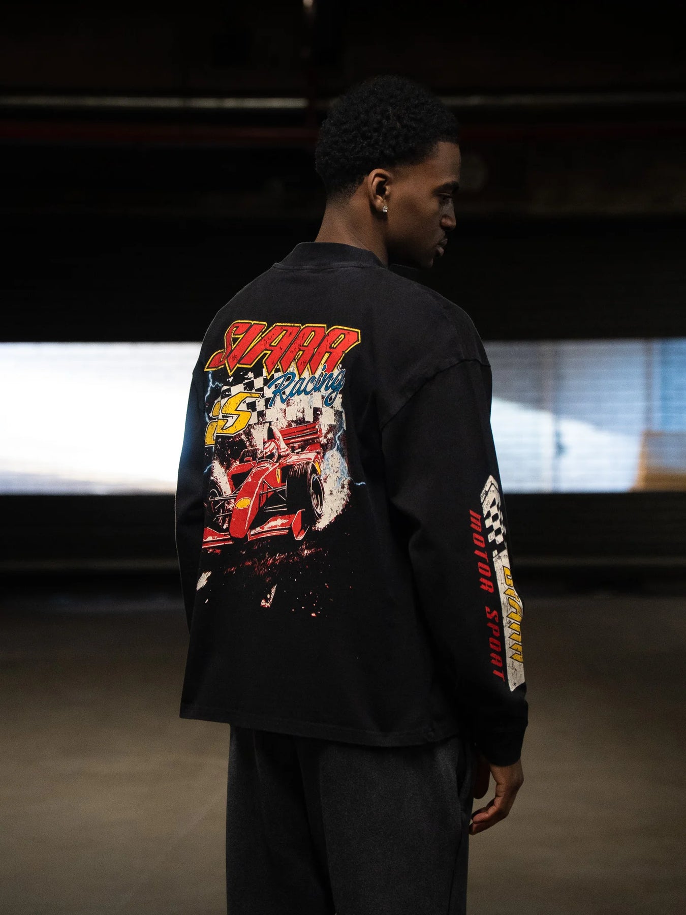 SIARR Motor Sport Long Sleeve T Shirt Washed Black